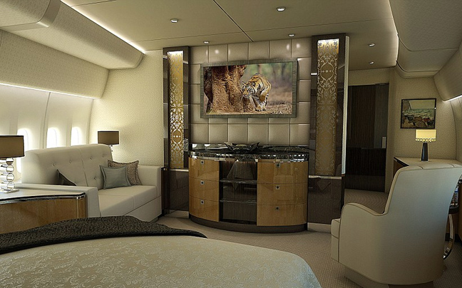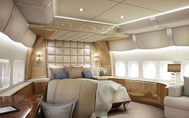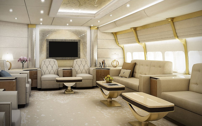 Υπό κανονικές συνθήκες ένα αεροσκάφος Boeing 747 χωρά περίπου 600 ανθρώπους. Μπορεί λοιπόν κανείς να φανταστεί πόση άνεση και πολυτέλεια διαθέτει όταν μετατρέπεται σε ιπτάμενο… παλάτι για έναν άνθρωπο.