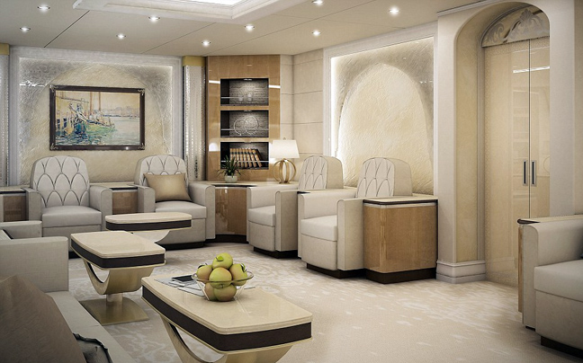 Το αεροσκάφος ανήκει βέβαια σε έναν, αλλά ασφαλώς θα μπορεί να φιλοξενεί δεκάδες καλεσμένους.