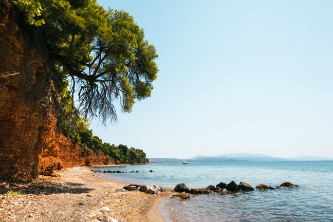 Κόκκινο χώμα και πεύκα στολίζουν τη μοναδική σε κάλος παραλία της…