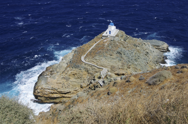 Πολύ κοντά στο Κάστρο της Σίφνου, χτισμένος πάνω σε ένα βράχο δεσπόζει ο ναός των Επτά Μαρτύρων.
