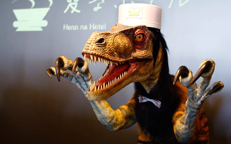 Η αλυσίδα ξενοδοχείων Henn na chain σάς υποδέχεται με ρομποτικούς δεινοσαύρους στη ρεσεψιόν και έξυπνες μηχανές που σας τραγουδούν στο δωμάτιο για να αποκοιμηθείτε γλυκά.