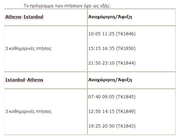 Η επίσκεψη σας στην γειτονική Τουρκία, παύει να είναι ένα απλό όνειρο, καθώς μπορεί να αποτελέσει πραγματικότητα, με τις τρεις καθημερινές πτήσεις της εταιρείας. Δεν χρειάζεται πλέον να φαντάζεστε πως είναι το Grand Bazaar, η Αγιά Σοφιά, ο Βόσπορος, το Υδραγωγείο και το Τοπ Καπί. Έφτασε η στιγμή να κλείσετε τα εισιτήριά σας!
