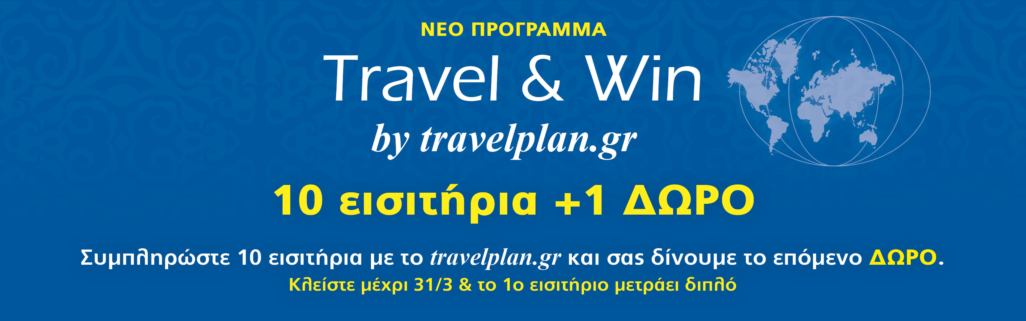 Πιο συγκεκριμένα, όλοι οι πελάτες του Travel Plan που θα ολοκληρώσουν δέκα αγορές εισιτηρίων μέσα από το travelplan.gr όποτε εκείνοι επιθυμούν, θα αποκτήσουν ένα επιπλέον εισιτήριο δωρεάν για τον επόμενο προορισμό τους. Ως επιπλέον κίνητρο, για όλους τους πελάτες που θα κλείσουν το αεροπορικό τους εισιτήριο από 01/01/2014 έως και 31/03/2014 και θα γίνουν αυτόματα μέλη του travel and win, η εταιρεία προσφέρει διπλούς πόντους στο πρόγραμμα ανταμοιβής, κι έτσι το πρώτο τους εισιτήριο θα μετρήσει διπλό φέρνοντάς τους πιο κοντά στο να αποκτήσουν ένα εισιτήριο δώρο.