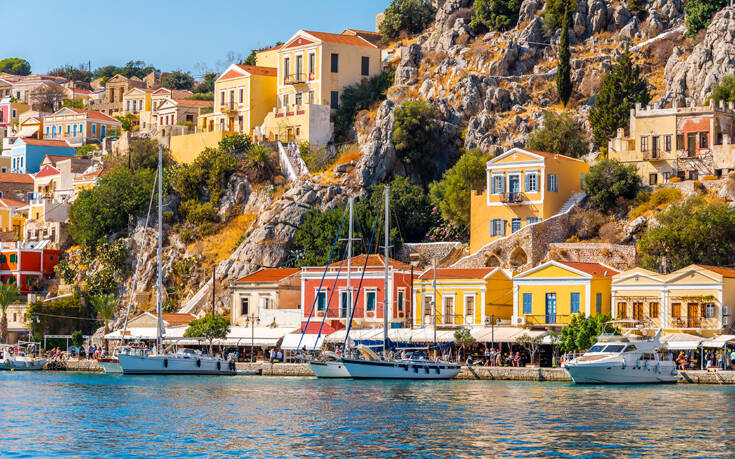 Το πολύχρωμο λιμάνι του Γιαλού στη μικροσκοπική Σύμη, που συναγωνίζεται σε ομορφιά το γραφικό Κλίμα και την Χώρα της Μήλου, Πλάκα, δεν θα μπορούσαν να λείπουν από το αφιέρωμα.