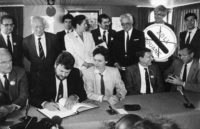 Το 1985 πέντε κράτη μέλη των Ευρωπαϊκών Κοινοτήτων (Βέλγιο, Γερμανία, Γαλλία, Λουξεμβούργο και Ολλανδία) υπέγραψαν τη συνθήκη Σένγκεν, με στόχο την προοδευτική κατάργηση των ελέγχων στα κοινά σύνορα, την καθιέρωση της ελεύθερης κυκλοφορίας για όλα τα πρόσωπα-υπηκόους των κρατών που υπέγραψαν τη Συμφωνία, καθώς και την αστυνομική και δικαστική συνεργασία.