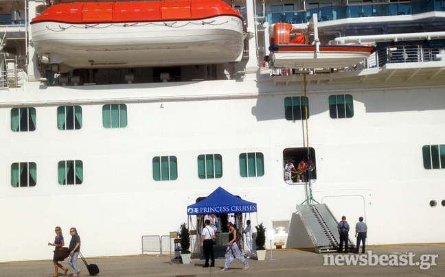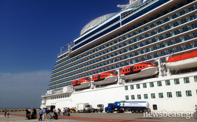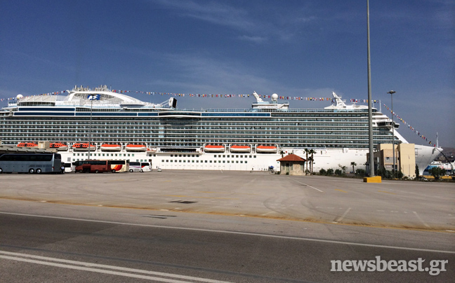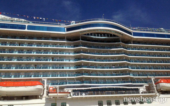 Από το πρωί αρκετοί είναι εκείνοι που πλησίασαν για να θαυμάσουν από κοντά το κρουαζιερόπλοιο, όμως δεν μπορούν να φθάσουν πολύ κοντά διότι υπάρχει περίφραξη.