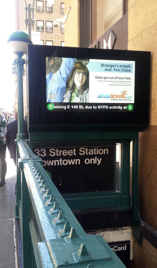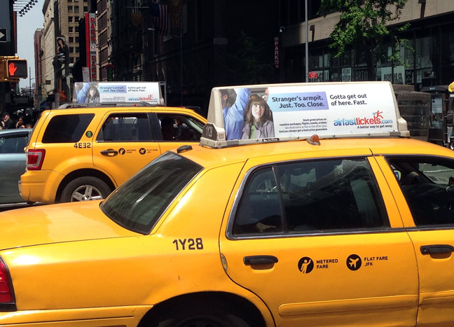 Το λιγότερο δυναμική θα μπορούσε να χαρακτηριστεί η παρουσία της Airfasttickets, του μεγαλύτερου ελληνικού-πολυεθνικού online γραφείου τουριστικών υπηρεσιών στην αγορά της Νέας Υόρκης, καθώς το λογότυπο της εταιρίας φιγουράρει στα πιο κεντρικά σημεία του Μεγάλου Μήλου. Πιο συγκεκριμένα, η Airfasttickets κατακτά την αγορά της Νέας Υόρκης, καθώς βρίσκεται στα billboards της Time Square και στο metro, ενώ το γνωστό μπλε-πορτοκαλί λογότυπο ντύνει εκατοντάδες ταξί και λεωφορεία που κυκλοφορούν σε όλη την πόλη.