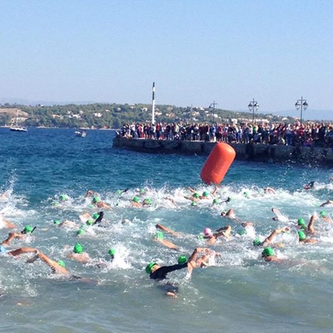 Πλήθος κόσμου συγκεντρώθηκε από το πρωί στην εντυπωσιακή πλατεία του Ποσειδωνίου και παρέμεινε επευφημώντας μέχρι τον τερματισμό και του τελευταίου κολυμβητή.