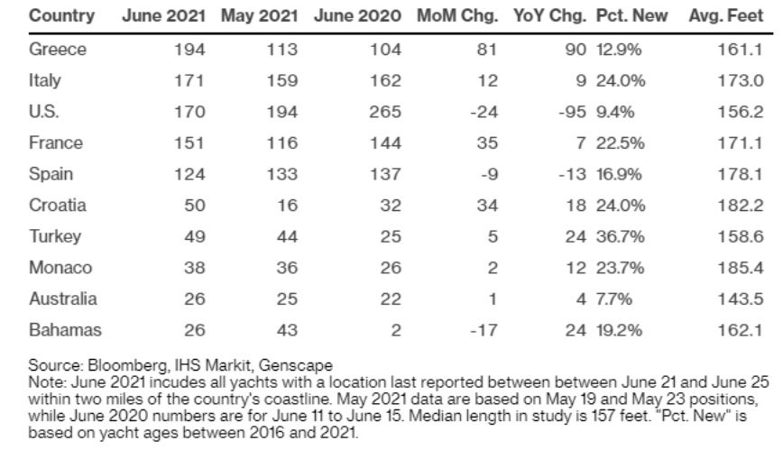 Η Ελλάδα βρίσκεται στην κορυφή της λίστας του Bloomberg σε σχέση με τον αριθμό των σούπερ γιοτ των πλουσίων που επισκέπτονται τις ακτές της. Τουλάχιστον 194 έχουν ρίξει άγκυρα στις ελληνικές ακτές από τις 25 Ιουνίου.
