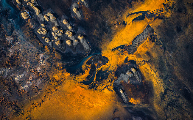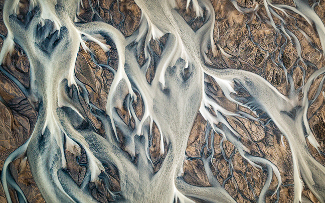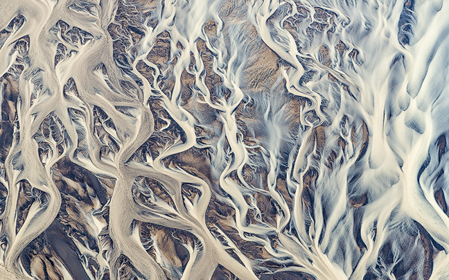 Πρόκειται για φωτογραφίες τραβηγμένες από ψηλά που είναι σαν να ακροβατούν μεταξύ πραγματικότητας και φαντασίας, θυμίζοντας πίνακες αφηρημένης ζωγραφικής.