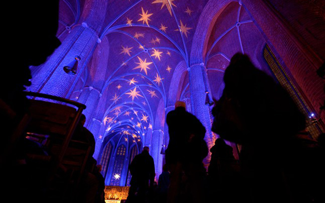 Η Εκκλησία του Αγίου Γεωργίου φωτίζεται εντυπωσιακά με μπλε φως για όλη την εορταστική περίοδο στο Ανόβερο της Γερμανίας.