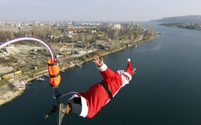Ο Άγιος Βασίλης κάνει ένα θεαματικό άλμα από την γέφυρα Asparuhov στη Βάρνα, στις ακτές της Μαύρης Θάλασσας στη Βουλγαρία.