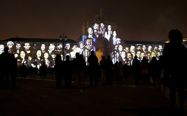 Πολίτες της Λισσαβόνας, παρακολουθούν ένα μοναδικό σόου, κάθε βράδυ, στα κτίρια της πόλης, στην πλατεία Comercio.