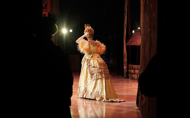 Η ντίβα της παντομίμας Nigel Ellacott, πρωταγωνιστεί ως βασίλισσα Blodwyn σε μια παράσταση της «Ωραίας Κοιμωμένης» στο Llandudno της Ουαλίας.