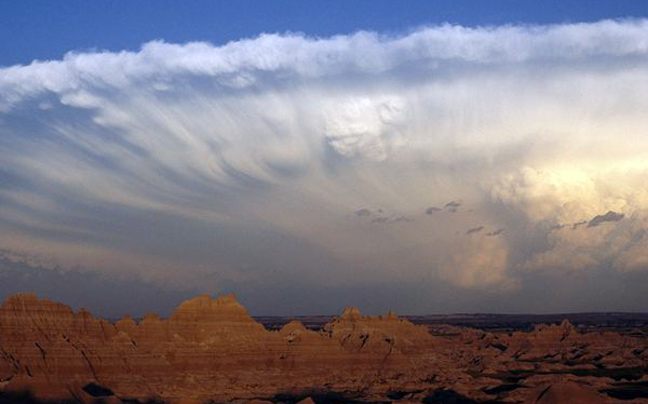 Μια καταιγίδα κινείται στην περιοχή Badlands στη Νότια Ντακότα.