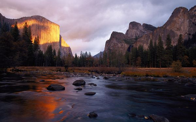 Ο ήλιος φωτίζει μαγικά το όρος El Capitan και τον ποταμό Mercedστο Εθνικό ΠάρκοYosemite στην Καλιφόρνια.
