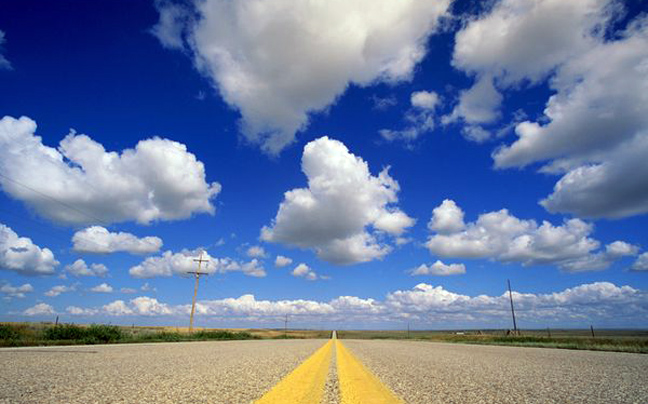 «Παιχνιδιάρικα» σύννεφα στον καλοκαιρινό ουρανό, μοιάζουν να κρέμονται πάνω ένα δρόμο στη Μοντάνα στις ΗΠΑ.