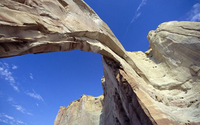 Αυτή η επιβλητική λευκή αψίδα είναι ένα από τα φυσικά αξιοθέατα της περιοχής Navajo Indian στην Αριζόνα.