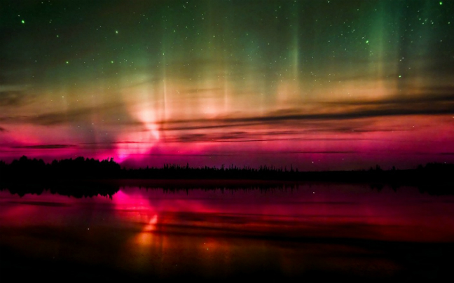 Το Βόρειο Σέλας εμφανίζεται στην Ισλανδία με ένα πλήρες φάσμα χρωμάτων, από το φωτεινό ροζ και κόκκινο φως το πράσινο, το μπλε και το μοβ.
