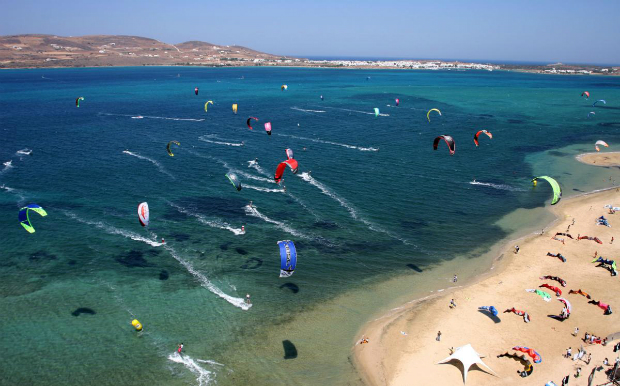 Το όνομά της την περιγράφει απόλυτα. Με χρυσαφένια αμμουδιά, η μεγαλύτερη σε έκταση παραλία της Πάρου και από τις πιο κοσμικές, έχει βραβευτεί με Γαλάζια Σημαία. Ιδανική για κολύμπι στα καθαρά νερά της, αλλά και για δραστηριότητες θαλάσσιου τουρισμού, όπως η ιστιοπλοία. Γύρω από την παραλία λειτουργούν ξενοδοχεία, ενοικιαζόμενα διαμερίσματα, εστιατόρια και μπαρ.