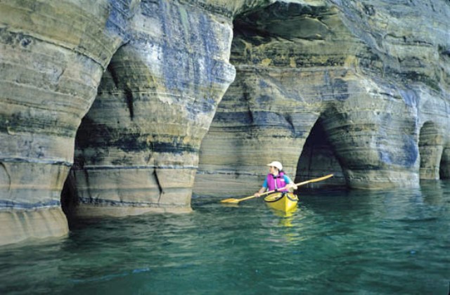 Τα μανιασμένα κύματα που χτυπούσαν τους λόφους ψαμμίτη έχουν δημιουργήσει ένα πανέμορφο δίκτυο θαλάσσιων σπηλιών, που συνδέονται μεταξύ τους και τις οποίες μπορεί να συναντήσει κανείς στα νησιά Devil’s Island και Sand Island και στις όχθες της λίμνης.