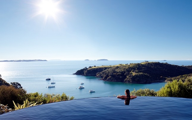 Μια πισίνα υπερχείλισης με απεριόριστη θέα, στο Delamore Lodge στο Νησί Waiheke, Νέα Ζηλανδία