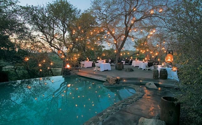 Υπό το φως των κεριών η πισίνα του καταλύματος Singita Sabi Sand στη Νότια Αφρική.