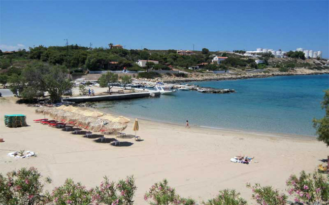 Παραλία με ψιλή άμμο στο ομώνυμο παραθαλάσσιο χωριό, προστατευμένη μέσα σε έναν κόλπο. Είναι οργανωμένη και διαθέτει καντίνα και ταβέρνα.