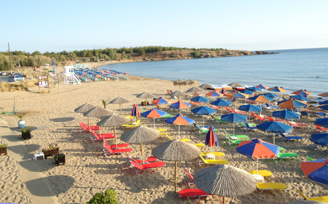 Αμμώδης, οργανωμένη παραλία με παροχές θαλάσσιων σπορ. Ιδανική για οικογενειακές βουτιές, αφού η θάλασσα είναι ρηχή και η περιοχή προστατεύεται από τους ανέμους. Εδώ θα βρείτε εστιατόρια και καφέ.