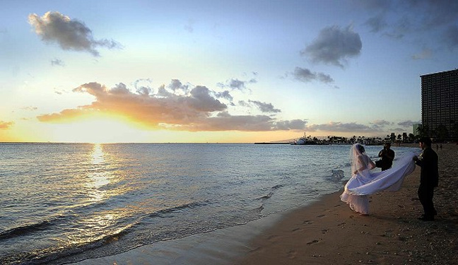 Η παραλία Waikiki είναι το αγαπημένο μέρος για γαμήλιες τελετές και δεξιώσεις.