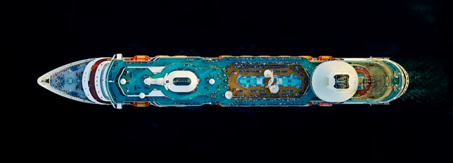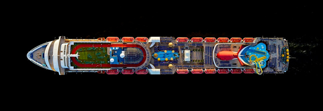 Ο φωτογράφος μαζί με τη κάμερά του, τράβηξε μερικά εντυπωσιακά καρέ πλοίων που μοιάζουν σαν πύργοι έτσι, από ψηλά. Η σειρά του τιτλοφορείται «Cruise Ships».