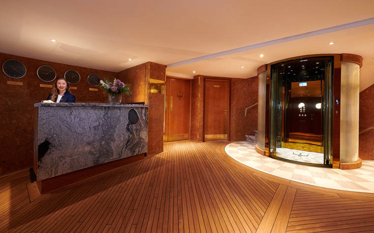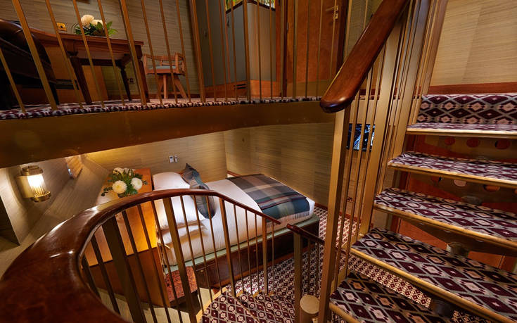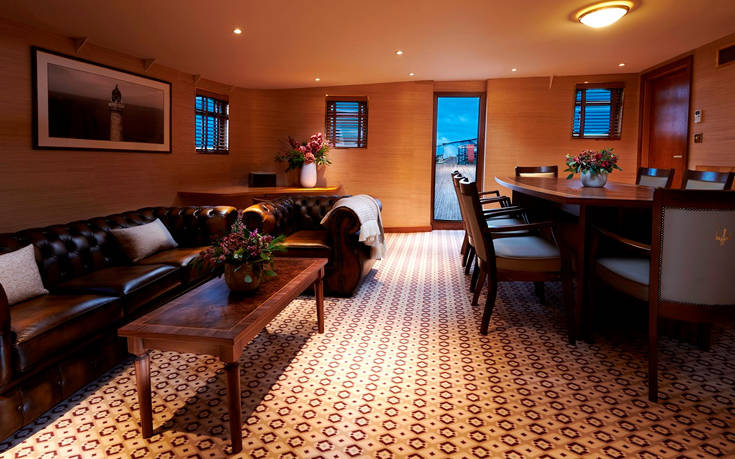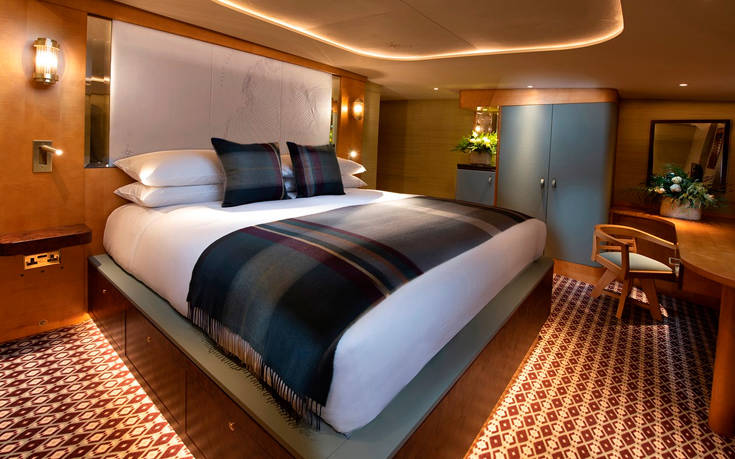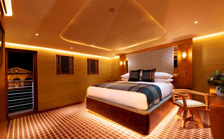 Όλα πια μυρίζουν κλασική κομψότητα και πολυτέλεια, από τις αρ ντεκό πινελιές και τις νότες μπρούντζου μέχρι και τη βασιλική αισθητική που επικρατεί παντού στο σκάφος.