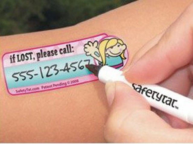 SafetyTat: Είναι ο εφιάλτης κάθε γονιού που είτε πηγαίνει βόλτα το παιδί του σε ένα πάρκο, μουσείο, λούνα παρκ, εμπορικό κέντρο, είτε –ακόμη χειρότερα- ταξιδεύει στο εξωτερικό μαζί του: όταν τα παιδιά είναι ακόμη μικρά για να μιλούν και να επικοινωνούν με κάποιον τρίτο που να καταλαβαίνει αυτά που λένε και να θυμούνται το τηλέφωνο ή τη διεύθυνση του σπιτιού τους.