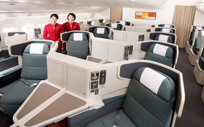 Οι επιβάτες της Cathay εκτιμούν το γεγονός ότι η εταιρεία τους προσφέρει μια εικονική πτήση, κατά τη διάρκεια της «μαραθώνιας» διαδρομής έως το Χόνγκ Κονγκ, που ξεκινά τρεις φορές την ημέρα από το αεροδρόμιο JFK και από τον Μάρτιο μια φορά καθημερινά από το Newark. Η Cathay προσφέρει κουζίνα επηρεάζεται από κορυφαίους σεφ του Χονγκ Κονγκ και εκτός από τις βραβευμένες πρώτη και διακεκριμένη θέση, ακόμα και η premium economy προσφέρουν ένα άνετο και χαλαρωτικό ταξίδι.