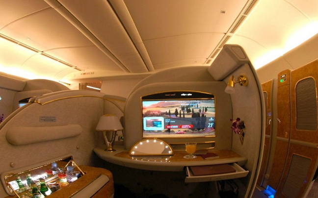 Η Emirates πετάει προς το Χιούστον με ένα πολυτελές αεροσκάφος, το οποίο διαθέτει 8 καθίσματα στην πρώτη θέση και 42 στην διακεκριμένη. Οι μεγιστάνες του πετρελαίου θα εκτιμήσουν την ταμπελίτσα «μην ενοχλείτε», το προσωπικό μίνι – μπαρ και το on-demand δείπνο στην πρώτη θέση.
