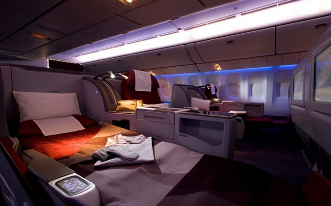 H Qatar πραγματοποιεί δρομολόγια μεταξύ των δύο ενεργειακών πρωτευουσών με ένα αεροπλάνο 259 καθισμάτων με μόνο δύο επιλογές θέσης, πράγμα που σημαίνει ότι όσοι αποκτήσουν ένα από τα 42 κρεβάτια στην διακεκριμένη θέση, θα έχουν μια γενναιόδωρη απόσταση μεταξύ των καθισμάτων, που έχουν τοποθετηθεί σε διάταξη 2-2-2.