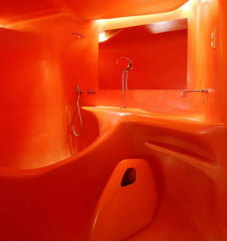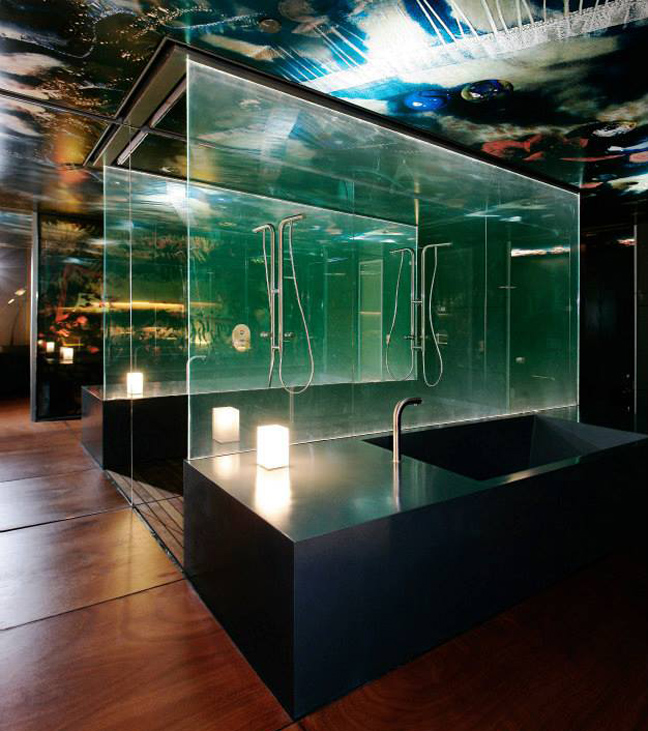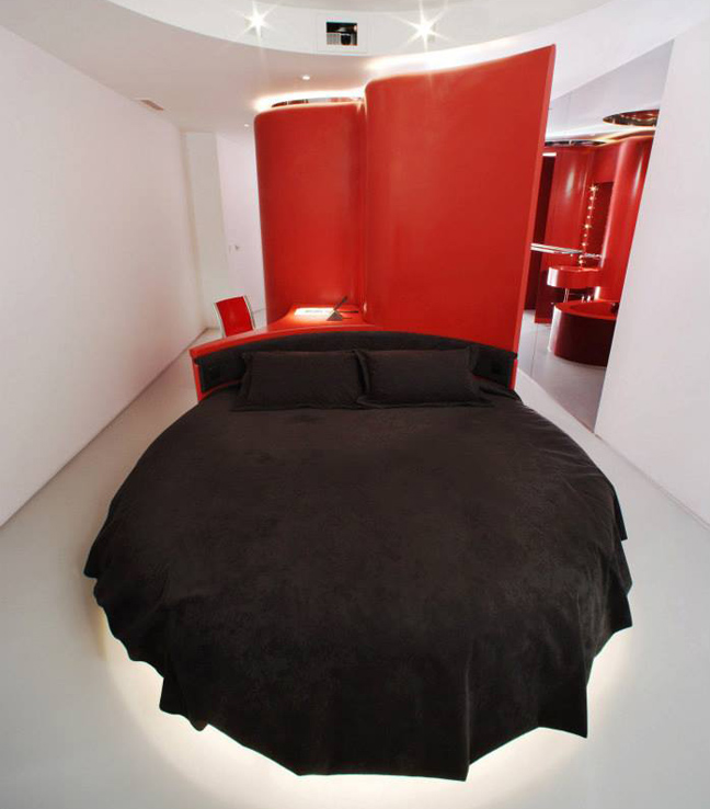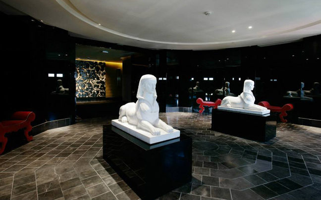 Ο κάθε όροφος είναι μια αποκάλυψη, αφού νιώθεις κάθε φορά σαν να μεταφέρεσαι σε εντελώς διαφορετικούς κόσμους – από φουτουριστικό πλαστικό κόκκινου χρώματος σε μαύρο μάρμαρο ή παραδοσιακό δέρμα και ξύλο.