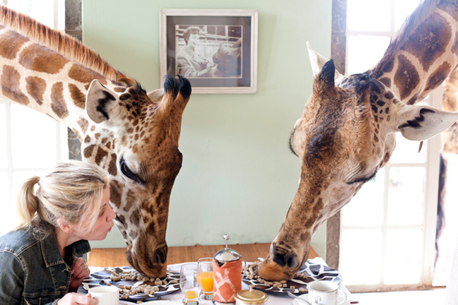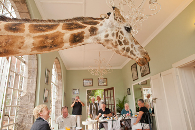 Ο απρόσμενος επισκέπτης την ώρα που απολαμβάνετε το πρωινό σας στο «Giraffe Manor», είναι μια αληθινή έκπληξη! Σηκώστε όσο πιο ψηλά μπορείτε το κεφάλι σας και χαιρετίστε τον!