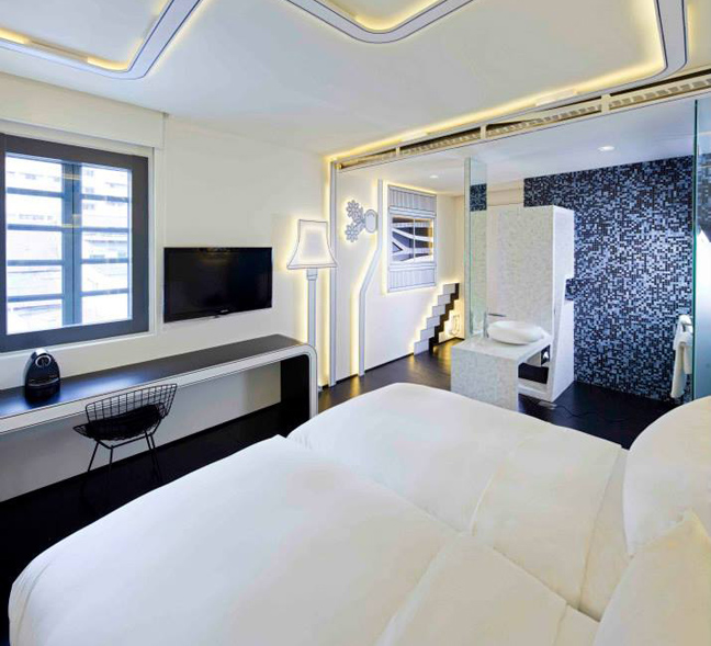 Κάθε ένας από τους τέσσερις ορόφους σχεδιάστηκε από ένα διαφορετικό τοπικό αρχιτεκτονικό γραφείο, με κοινό στοιχείο τη funky δημιουργικότητά τους. Τα δωμάτια του δευτέρου ορόφου είναι έντονα μονόχρωμα, ενώ ο τρίτος όροφος έχει λευκά δωμάτια pop -art, εμπνευσμένα από την τέχνη του οριγκάμι και των pop -up βιβλίων.