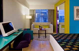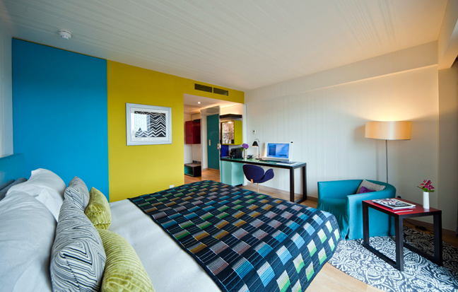 Τα 136 δωμάτια είναι ξεχωριστά διακοσμημένα και φυσικά πολύχρωμα, με τις πολυθρόνες σε σχήμα τουλίπας, τα λευκά είδη MissoniHome και τα υπέροχα διακοσμητικά, όπως τα υπερμεγέθη βάζα και τα λαμπερά ψηφιδωτά πλακάκια στα μπάνια να εντυπωσιάζουν.