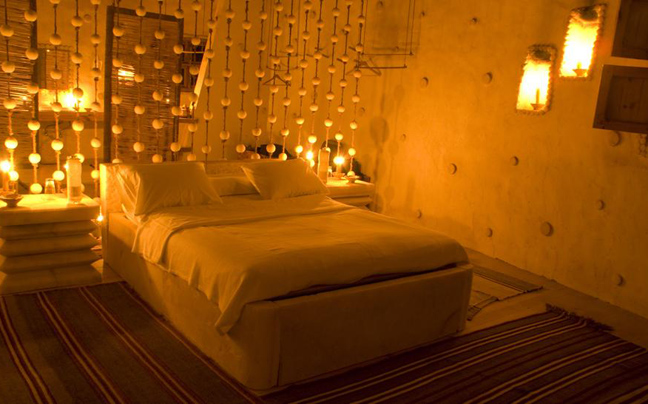 Αφήστε την απαλή λάμψη των διάσπαρτων λαμπτήρων να σας οδηγήσουν σε μια από τις σουίτες της ερήμου.
