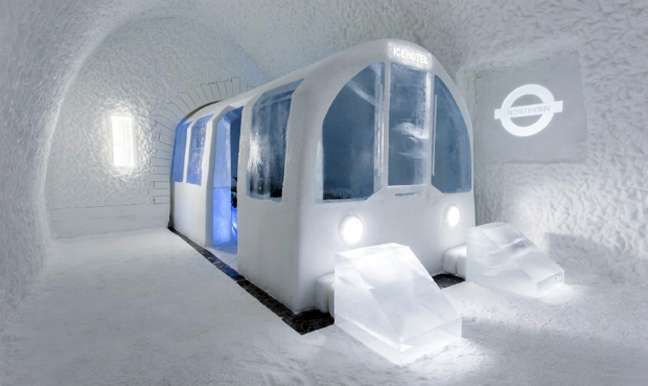 Τα 65 φετινά δωμάτια έχουν διακοσμηθεί, μεταξύ άλλων με ένα βαγόνι μετρό, μια χαριτωμένη αρκούδα που κάνει Pole-dancing σε έναν παγωμένο στύλο και πολλά ακόμα ευφάνταστα γλυπτά από πάγο.
