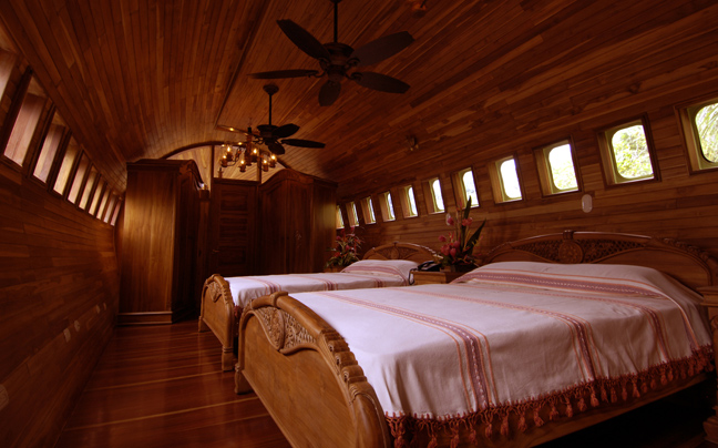 Τα πλήρως εξοπλισμένα δωμάτια είναι επενδυμένα από ξύλο τικ και καταλαμβάνουν το σύνολο του αεροσκάφους, από το πιλοτήριο έως το πίσω μέρος.