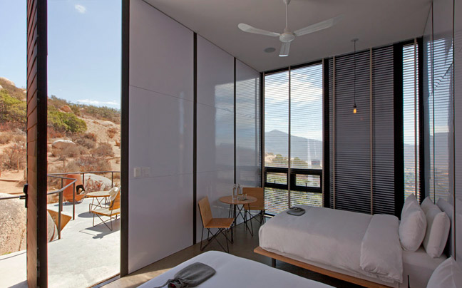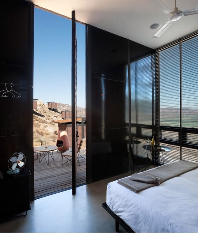 Κάθε μια από τις 20 πολυτελείς καμπίνες έχει ανεμπόδιστη θέα στην κοιλάδα. Από τα μικρά ξύλινα μπαλκόνια, οι επισκέπτες μπορούν να χαλαρώσουν κάτω από τον έναστρο ουρανό και να απολαύσουν τοπικά κρασιά. Η μίνιμαλ αισθητική επικρατεί στις καμπίνες οι οποίες όμως διαθέτουν σύγχρονες ανέσεις και πινελιές πολυτέλειας. Έχουν δημιουργηθεί από το Studio Gracia, μια εταιρεία με πάθος για την οικονομική αρχιτεκτονική.