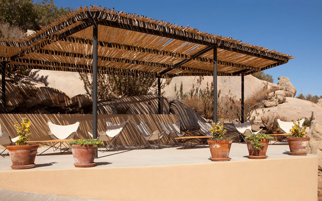 Από την πισίνα, οι επισκέπτες μπορούν να απολαύσουν την ηρεμία και την απομόνωση, αγναντεύοντας την έρημο που απλώνεται μπροστά τους.