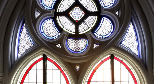 Ψηλοτάβανο, με αψίδες και πολύχρωμα παράθυρα, χαρακτηριστικό των καθολικών εκκλησιών υπόσχεται να προσφέρει στιγμές ηρεμίας και αγαλλίασης στους «πιστούς» επισκέπτες του.