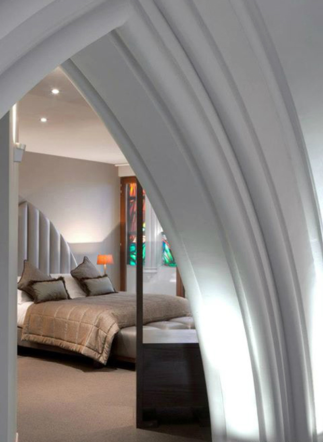 Οι επιβλητικοί χώροι και η μυστηριακή ατμόσφαιρα προσφέρουν μια μοναδική εμπειρία διαμονής, ενώ ακόμα και η τραπεζαρία, πρώην αίθουσα χορωδίας, εντυπωσιάζει με τη μινιμαλιστική της διακόσμηση.