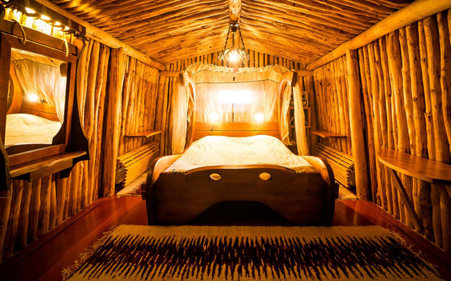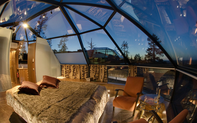 Οι επισκέπτες μπορούν να επιλέξουν ανάμεσα σε ξεχωριστές καμπίνες, παραδοσιακά ιγκλού ή φουτουριστικά ιγκλού φτιαγμένα από γυαλί.