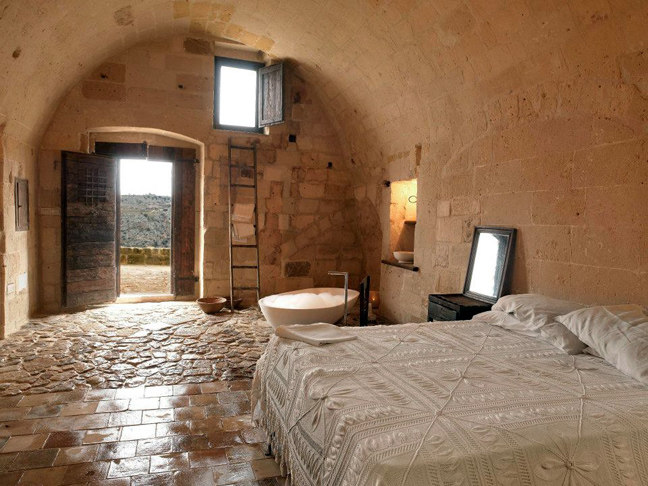 Από αυτά τα ερείπια γεννήθηκε το Sextantio Albergo Diffuso ένα μοναδικής αισθητικής ξενοδοχείο με 27 δωμάτια. Τα δωμάτια απλώνονται στα στενά, πλακόστρωτα δρομάκια του χωριού Santo Stefano. Κάτω από τις γραφικές καμάρες και πίσω από πόρτες από λαξευμένη πέτρα, οι επισκέπτες θα ανακαλύψουν δωμάτια απλά και απόλυτα εναρμονισμένα με τον περιβάλλοντα χώρο.