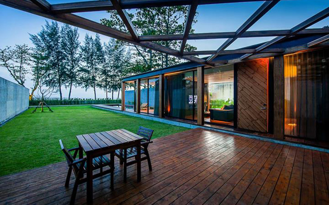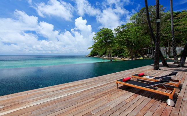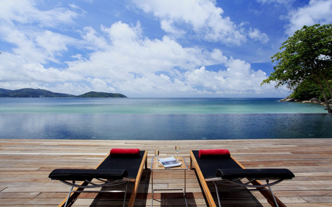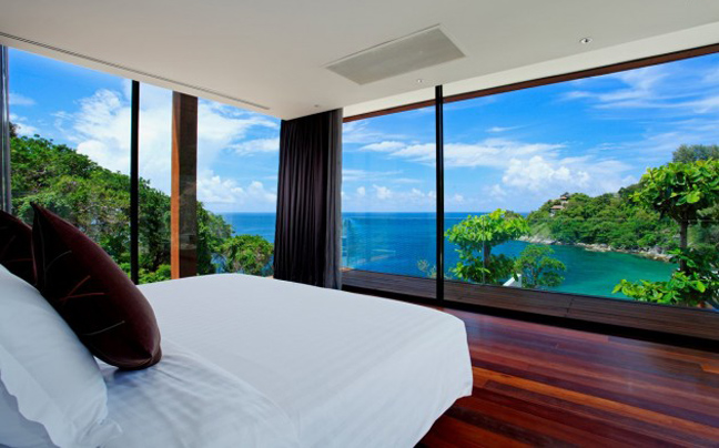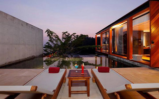 Από τις εξωτερικές ιδιωτικές πισίνες, οι επισκέπτες μπορούν να θαυμάσουν το τολμηρό σχέδιο του Bunnag, το οποίο αφήνει τα υπνοδωμάτια και τους χώρους χαλάρωσης να επιπλέουν στον αέρα. Οι κατάλευκοι γωνιακοί καναπέδες σας προσκαλούν να ξαπλώσετε και να απολαύσετε τη θέα.